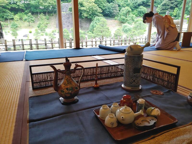 Having some tea outside at Kinkaku-ji Temple in Kyoto